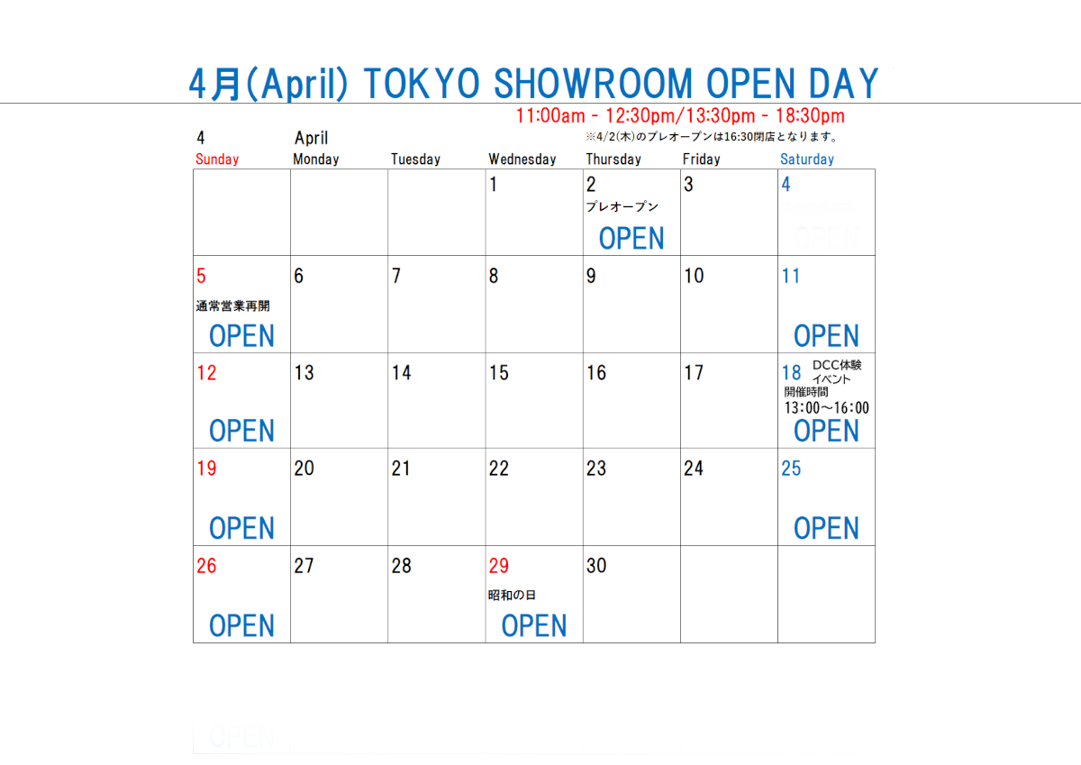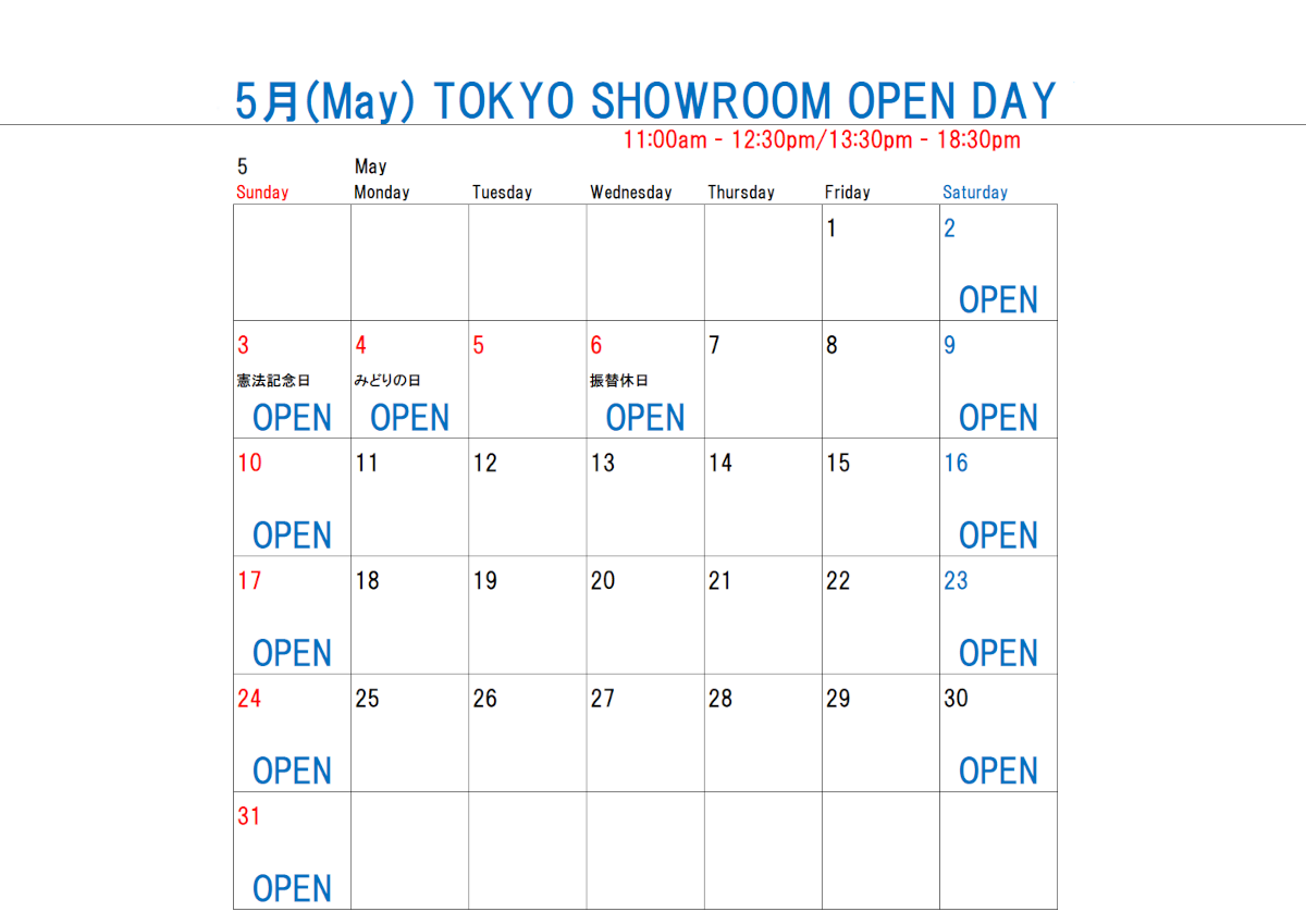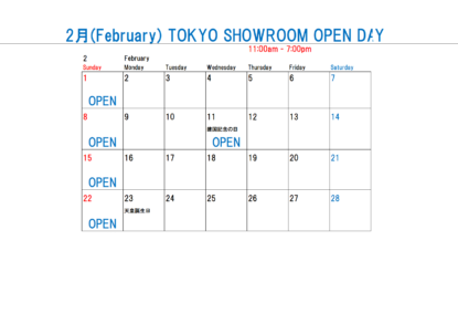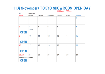 時間につきましては東京ショールーム及び本社の営業時間に準じます。