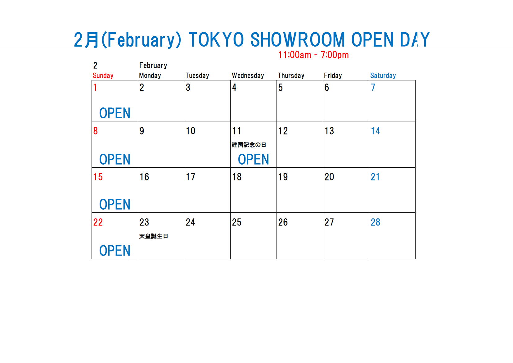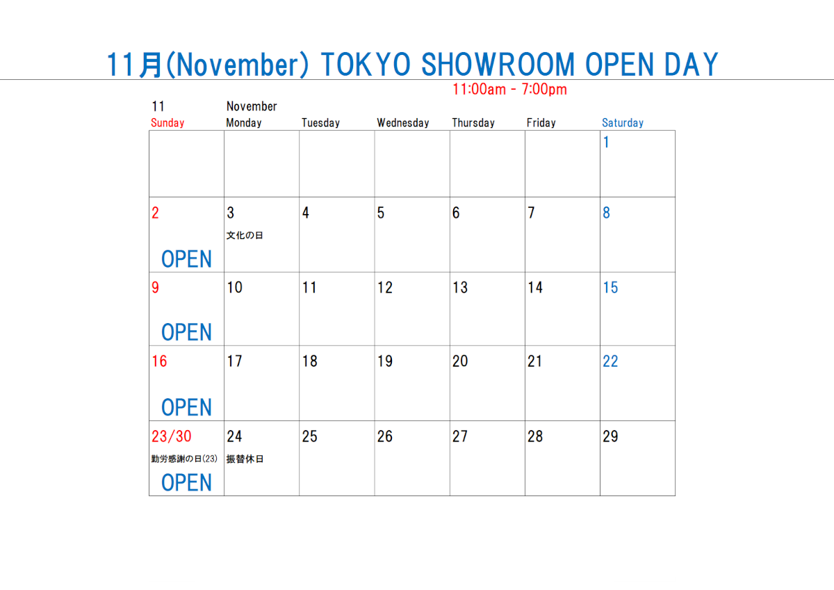 毎週日曜日・祝日(土・日と被る日を除く) 11:00~19:00