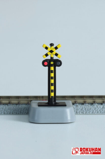給電部のあるロクハン製直線レールに接続することで、本物のように点滅する踏切警報器が登場します。