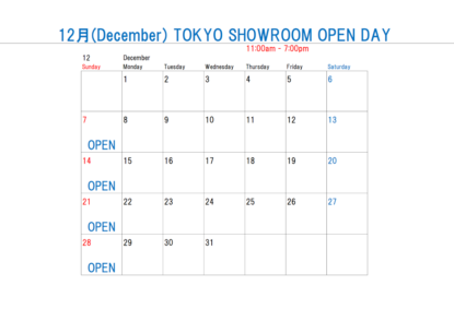 また東京・浅草のロクハン東京ショールームについてですが、年内は12月30日(木)までの