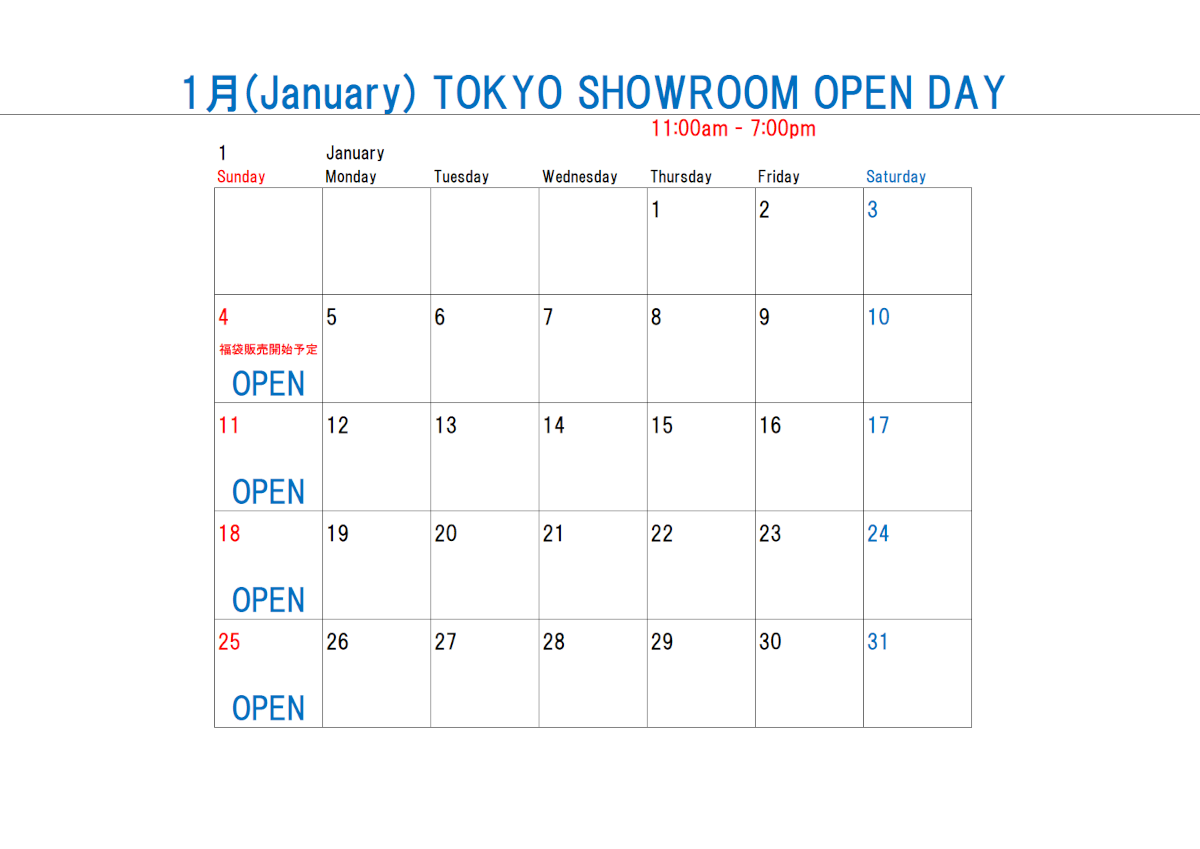 毎週日曜日・祝日(土・日と被る日を除く) 11:00~19:00