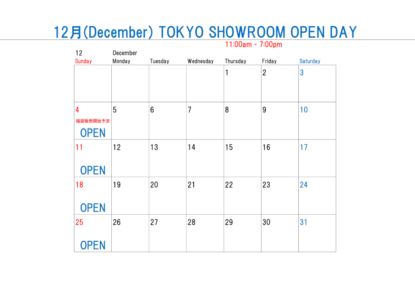 時間につきましては東京ショールーム及び本社の営業時間に準じます。