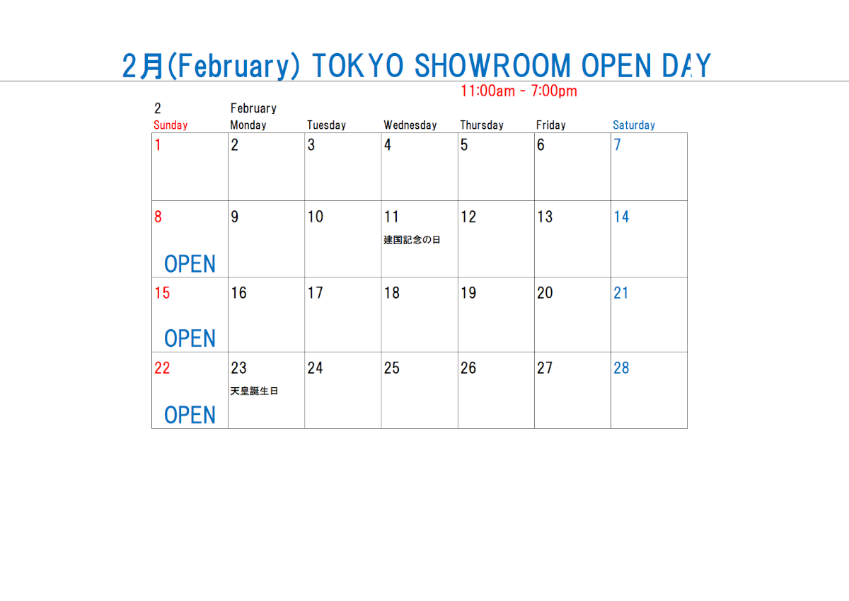 ※2月1日は臨時休業となります。今後営業予定日に変更がある場合は、